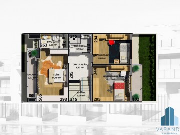 - 1º andar: 03 dormitorios, sendo 01 suite c/sacada e ptº p/ ar-condicionado
